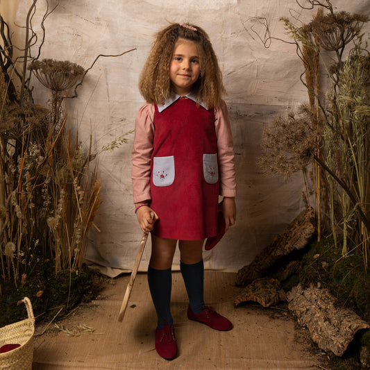 Cherry corduroy straight overall dress 4Y